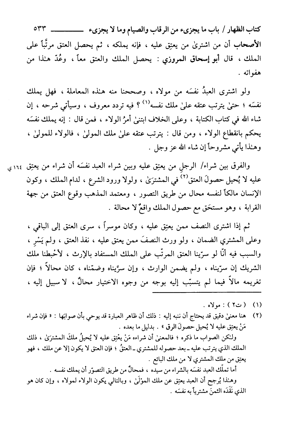 (2) هنا معنى دقيق قد يحتاج أن ننبه إليه: ذلك أن ظاهر العبارة قد يوحي بأن صوابَها: "فإن شراء مَنْ يعتِق عليه لا يُحيل حصولَ الرق". بدليل ما بعده.