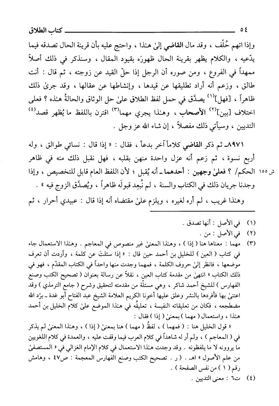 "قول الخليل هنا: (فمهما)، لفظُ (مهما) هنا بمعنى (إذا)، وهذا المعنى لم يذكر في (المعاجم)، ولم أر له شاهداً في كلام العرب فيما وقفت عليه، والعمدة في كلام اللغويين ما يروونه لا ما يلفظونه. وقد وجدت هذا الاستعمال في كلام الإمام الغزالي في "المستصفى من علم الأصول" اهـ. (ر. تصحيح الكتب وصنع الفهارس المعجمة: ص 47، وهامش رقم (1) من نفس الصفحة).