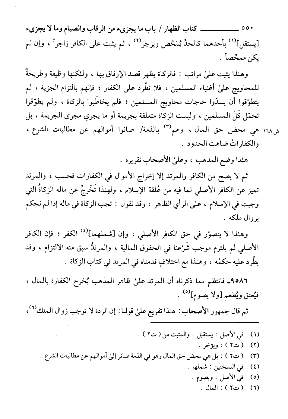 وهذا يثبت على مراتب: فالزكاة يظهر قصد الإرفاق بها، ولكنها وظيفة وطريحةٌ للمحاويج على أغنياء المسلمين، فلا تطّرد على الكفار؛ فإنهم بالتزام الجزية، لم يتطوّقوا أن يسدّوا حاجات محاويج المسلمين؛ فلم يخاطَبوا بالزكاة، ولم يطوّقوا تحمّل كَلّ المسلمين، وليست الزكاة متعلقة بجريمة أو ما يجري مجرى الجريمة، بل هي محض حق المال، وهم (3) بالذمة صانوا أموالهم عن مطالبات الشرع، والكفاراتُ ضاهت الحدود.
