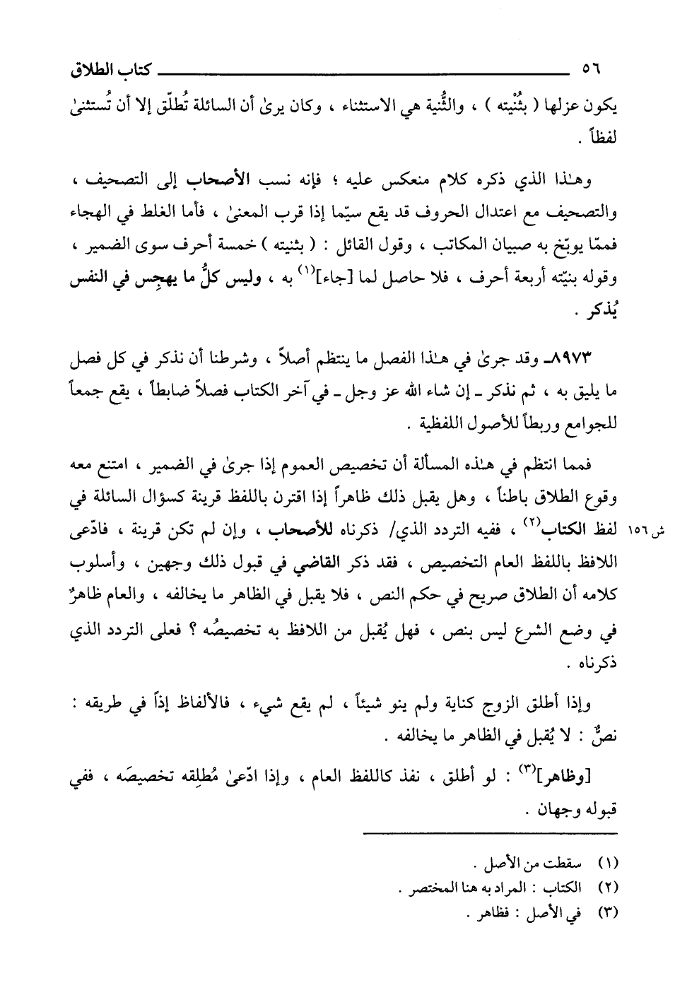 8973 - وقد جرى في هذا الفصل ما ينتظم أصلاً، وشرطنا أن نذكر في كل فصل ما يليق به، ثم نذكر -إن شاء الله عز وجل- في آخر الكتاب فصلاً ضابطاً، يقع جمعاً للجوامع وربطاً للأصول اللفظية.