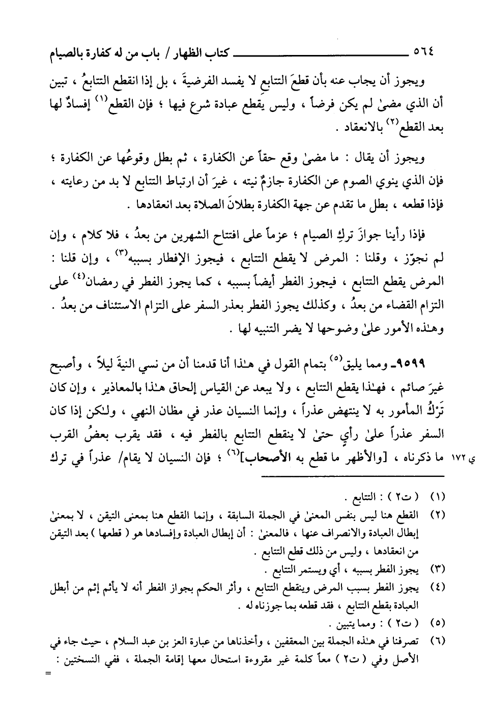 (2) القطع هنا ليس بنفس المعنى في الجملة السابقة، وإنما القطع هنا بمعنى التيقن، لا بمعنى إبطال العبادة والانصراف عنها، فالمعنى: أن إبطال العبادة وإفسادها هو (قطعها) بعد التيقن من انعقادها، وليس من ذلك قطع التتابع.