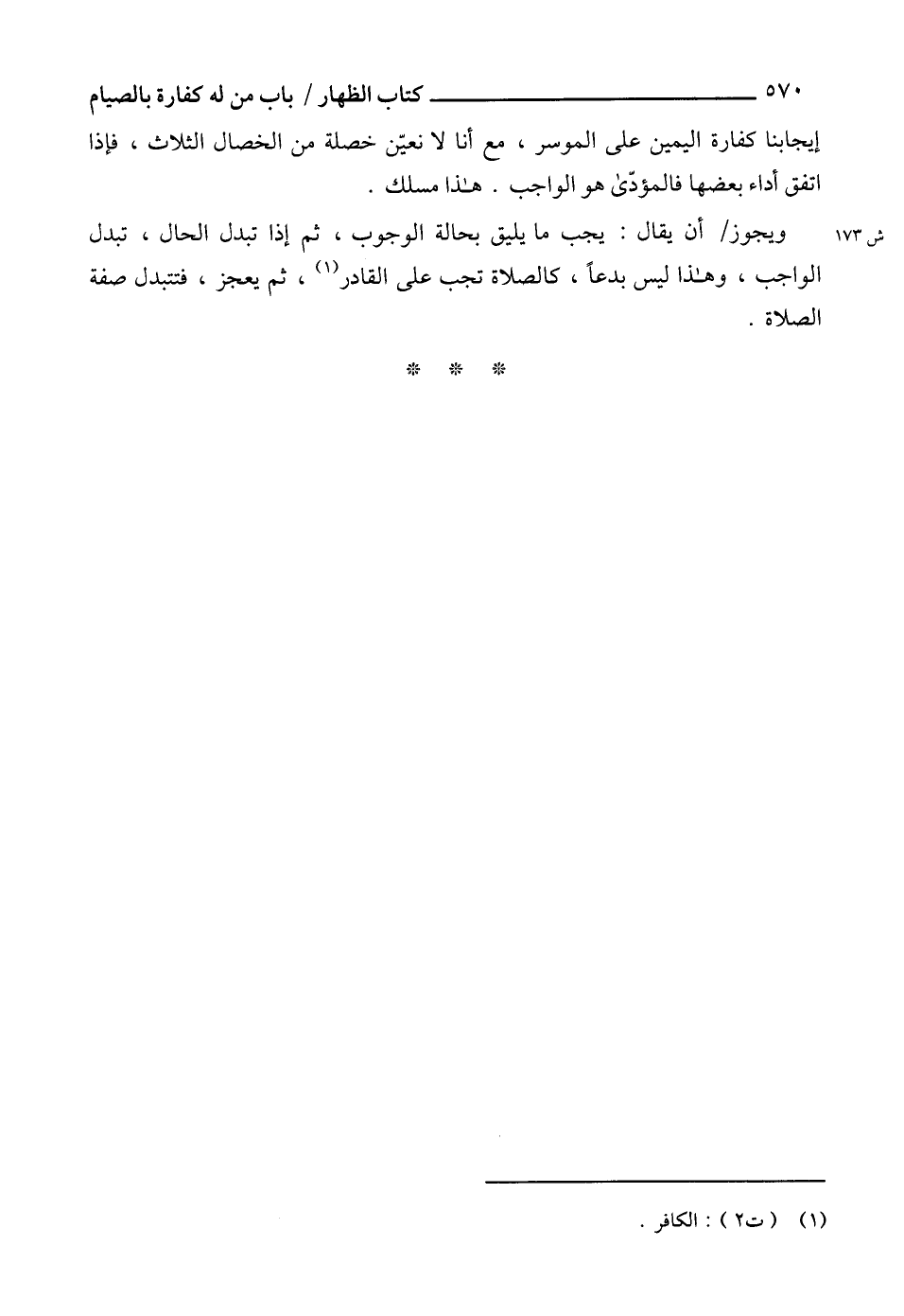 ويجوز أن يقال: يجب ما يليق بحالة الوجوب، ثم إذا تبدل الحال، تبدل الواجب، وهذا ليس بدعاً، كالصلاة تجب على القادر (1)، ثم يعجز، فتتبدل صفة الصلاة.