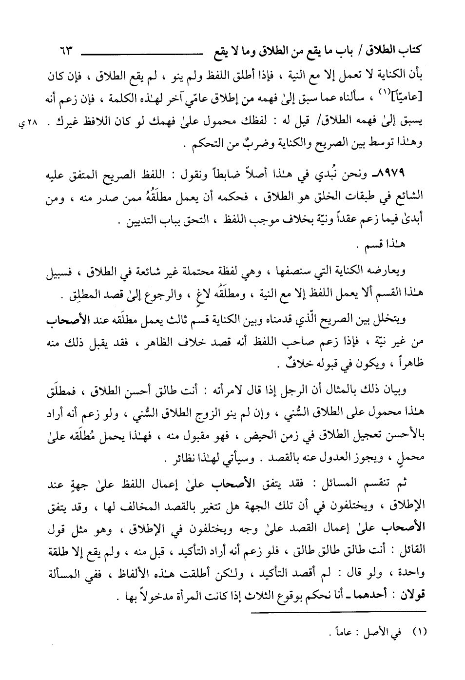 8979 - ونحن نبُدي في هذا أصلاً ضابطاً ونقول: اللفظ الصريح المتفق عليه الشائع في طبقات الخلق هو الطلاق، فحكمه أن يعمل مطلَقُهُ ممن صدر منه، ومن أبدى فيما زعم عقداً ونيّة بخلاف موجب اللفظ، التحق بباب التديين.