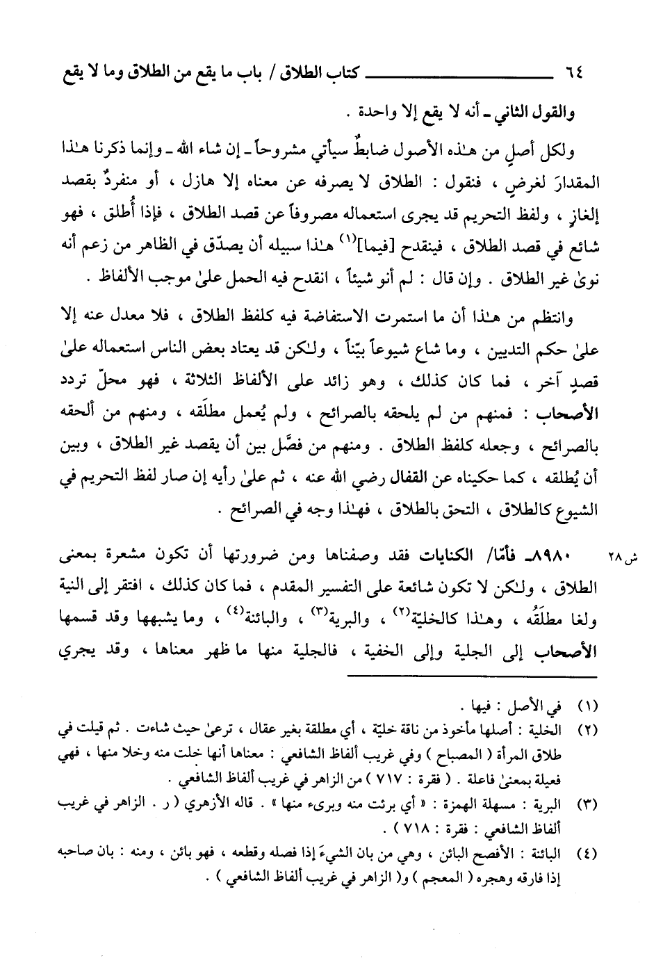 (4) البائنة: الأفصح البائن، وهي من بان الشيءَ إذا فصله وقطعه، فهو بائن، ومنه: بان صاحبه إذا فارقه وهجره (المعجم) و (الزاهر في غريب ألفاظ الشافعي).