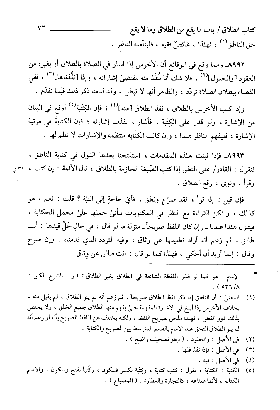 8993 - فإذا ثبتت هذه المقدمات، استفتحنا بعدها القول في كتابة الناطق، فنقول: القادر على النطق إذا كتب الصّيغة الجازمة بالطلاق، قال الأئمة: إن كتب، وقرأ، ونوى، وقع الطلاق.
