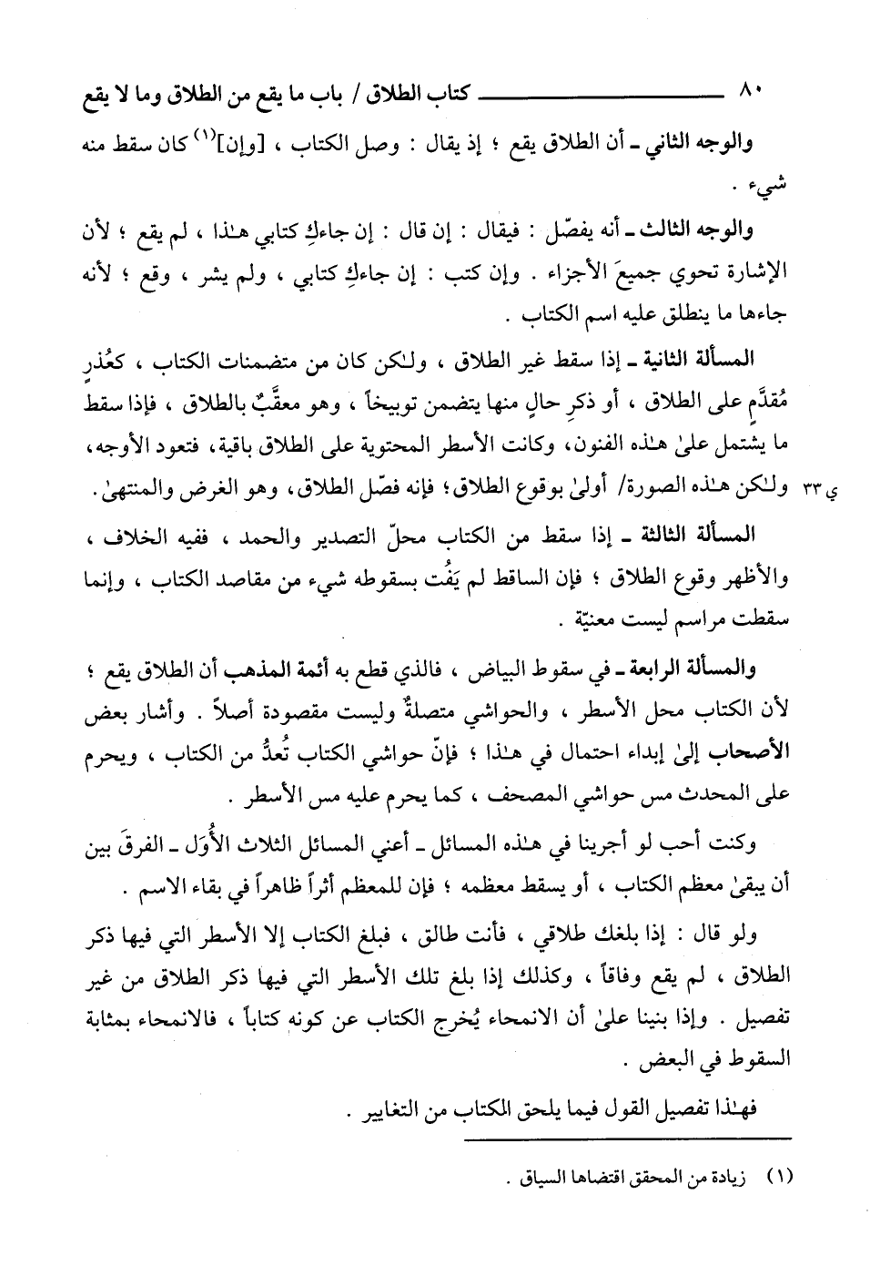 أن يبقى معظم الكتاب، أو يسقط معظمه؛ فإن للمعظم أثراً ظاهراً في بقاء الاسم.