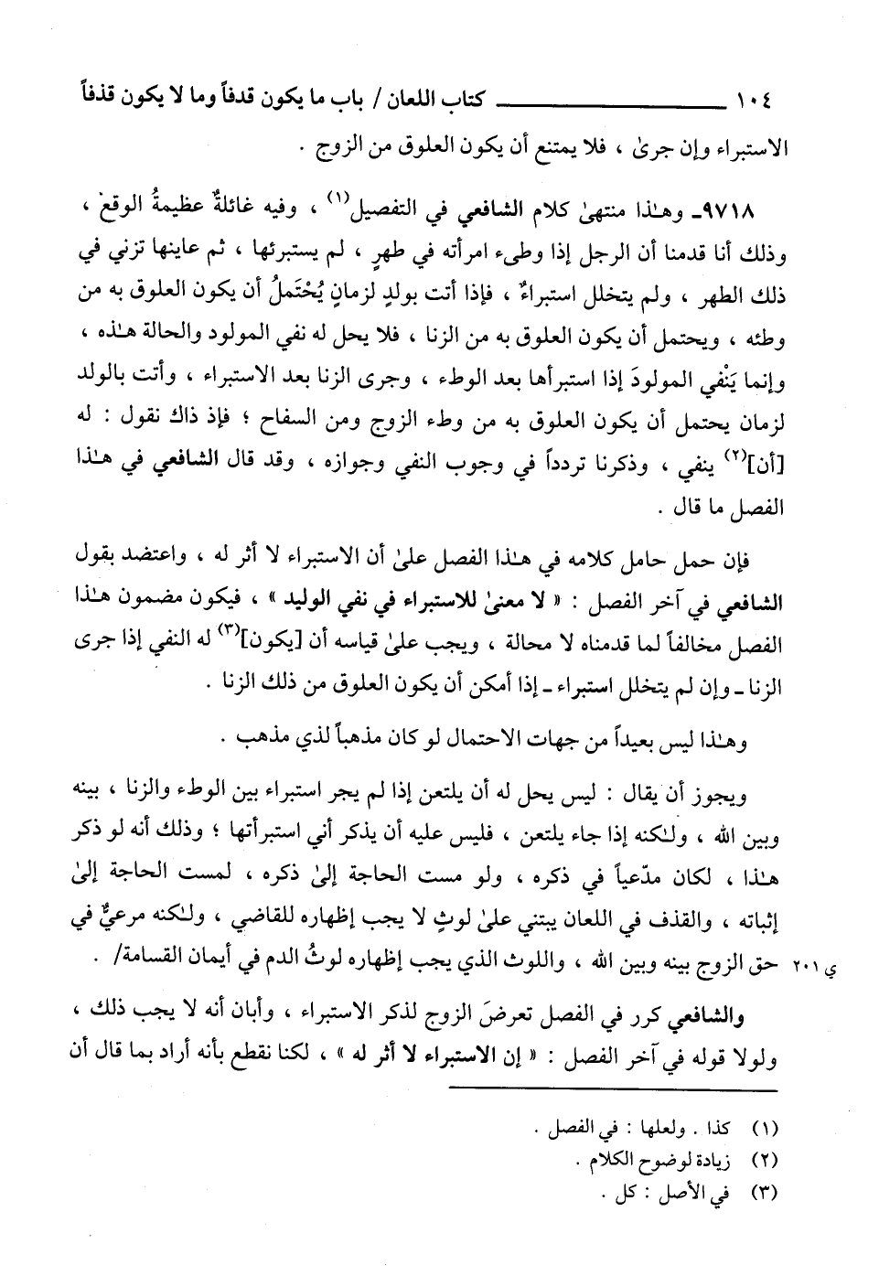 9718 - وهذا منتهى كلام الشافعي في التفصيل (1)، وفيه غائلةٌ عظيمةُ الوقع، وذلك أنا قدمنا أن الرجل إذا وطىء امرأته في طهرٍ، لم يستبرئها، ثم عاينها تزني في ذلك الطهر، ولم يتخلل استبراءٌ، فإذا أتت بولدٍ لزمانٍ يُحْتَملُ أن يكون العلوق به من وطئه، ويحتمل أن يكون العلوق به من الزنا، فلا يحل له نفي المولود والحالة هذه، وإنما يَنْفي المولودَ إذا استبرأها بعد الوطء، وجرى الزنا بعد الاستبراء، وأتت بالولد لزمان يحتمل أن يكون العلوق به من وطء الزوج ومن السفاح؛ فإذ ذاك نقول: له [أن] (2) ينفي، وذكرنا تردداً في وجوب النفي وجوازه، وقد قال الشافعي في هذا الفصل ما قال.
