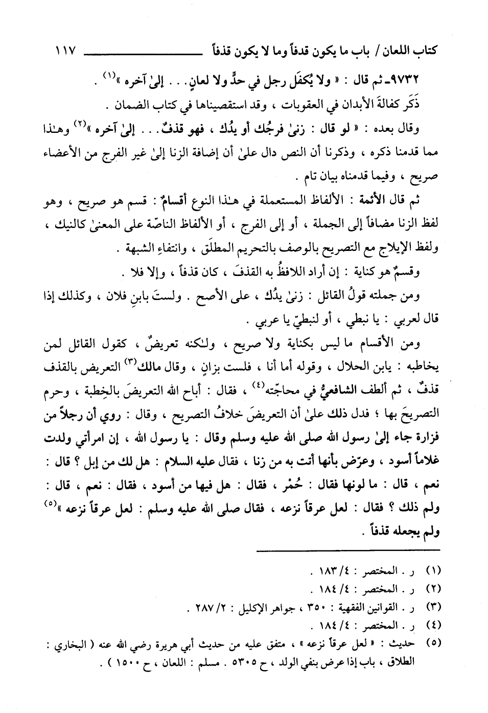 (5) حديت: " لعل عرقاً نزعه "، متفق عليه من حديث أبي هريرة رضي الله عنه (البخاري: الطلاق، باب إذا عرض بنفي الولد، ح 5305. مسلم: اللعان، ح 1500).