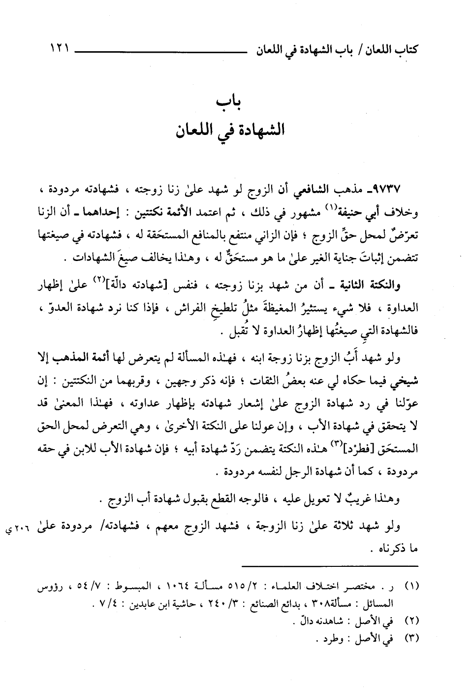 (1) ر. مختصر اختلاف العلماء: 2/ 515 مسألة 1064، المبسوط: 7/ 54، رؤوس المسائل: مسألة 308، بدائع الصنائع: 3/ 240، حاشية ابن عابدين: 4/ 7.