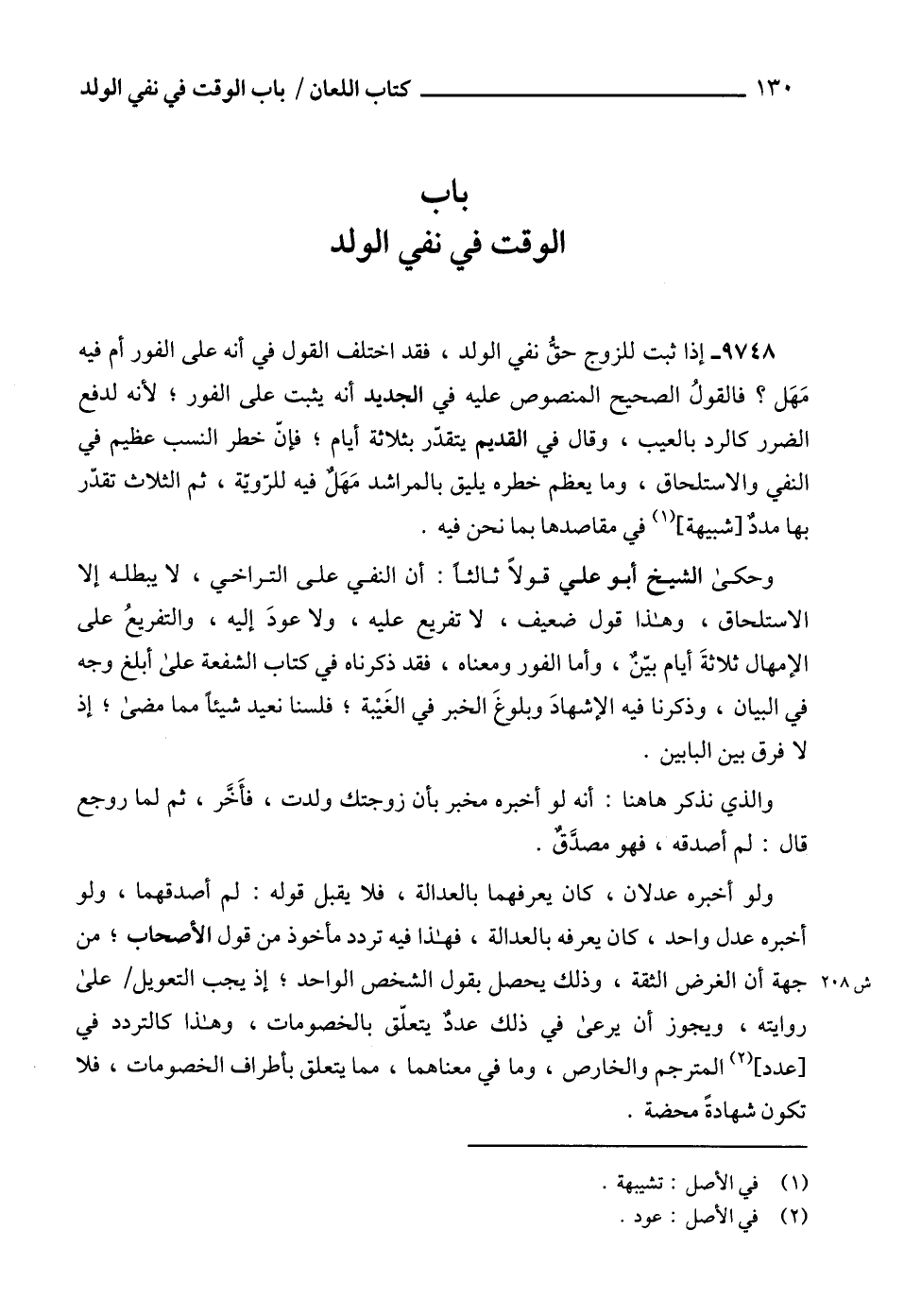 9748 - إذا ثبت للزوج حقٌّ نفي الولد، فقد اختلف القول في أنه على الفور أم فيه مَهَل؟ فالقولُ الصحيح المنصوص عليه في الجديد أنه يثبت على الفور؛ لأنه لدفع الضرر كالرد بالعيب، وقال في القديم يتقدّر بثلاثة أيام؛ فإنّ خطر النسب عظيم في النفي والاستلحاق، وما يعظم خطره يليق بالمراشد مَهَلٌ فيه للرّويّة، ثم الثلاث تقدّر بها مددٌ [شبيهة] (1) في مقاصدها بما نحن فيه.