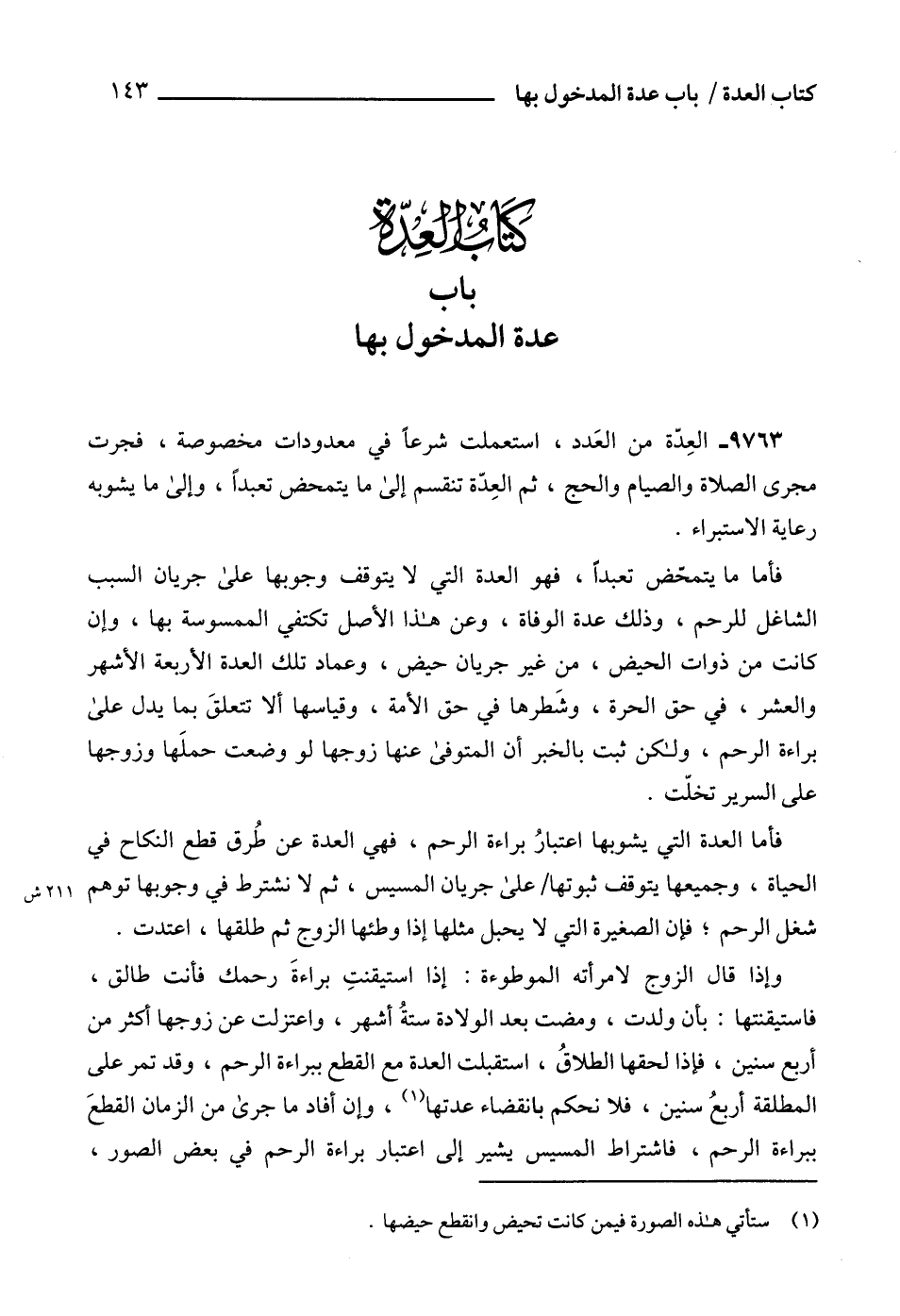 9763 - العِدّة من العَدد، استعملت شرعاً في معدودات مخصوصة، فجرت مجرى الصلاة والصيام والحج، ثم العِدّة تنقسم إلى ما يتمحض تعبداً، وإلى ما يشوبه رعاية الاستبراء.