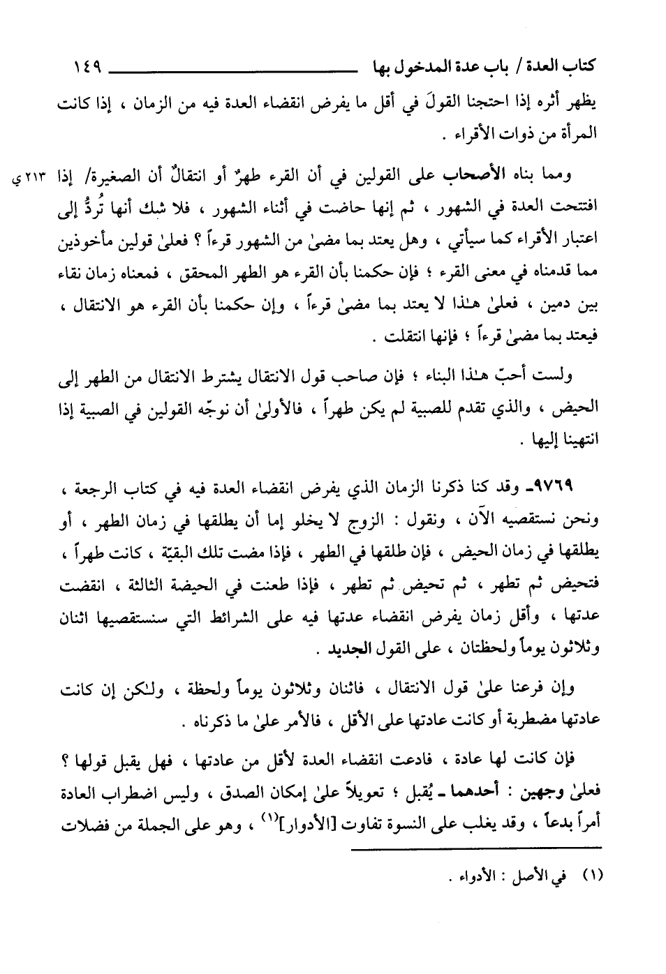 9769 - وقد كنا ذكرنا الزمان الذي يفرض انقضاء العدة فيه في كتاب الرجعة، ونحن نستقصيه الآن، ونقول: الزوج لا يخلو إما أن يطلقها في زمان الطهر، أو يطلقها في زمان الحيض، فإن طلقها في الطهر، فإذا مضت تلك البقيّة، كانت طهراً، فتحيض ثم تطهر، ثم تحيض ثم تطهر، فإذا طعنت في الحيضة الثالثة، انقضت عدتها، وأقل زمان يفرض انقضاء عدتها فيه على الشرائط التي سنستقصيها اثنان وثلاثون يوماً ولحظتان، على القول الجديد.