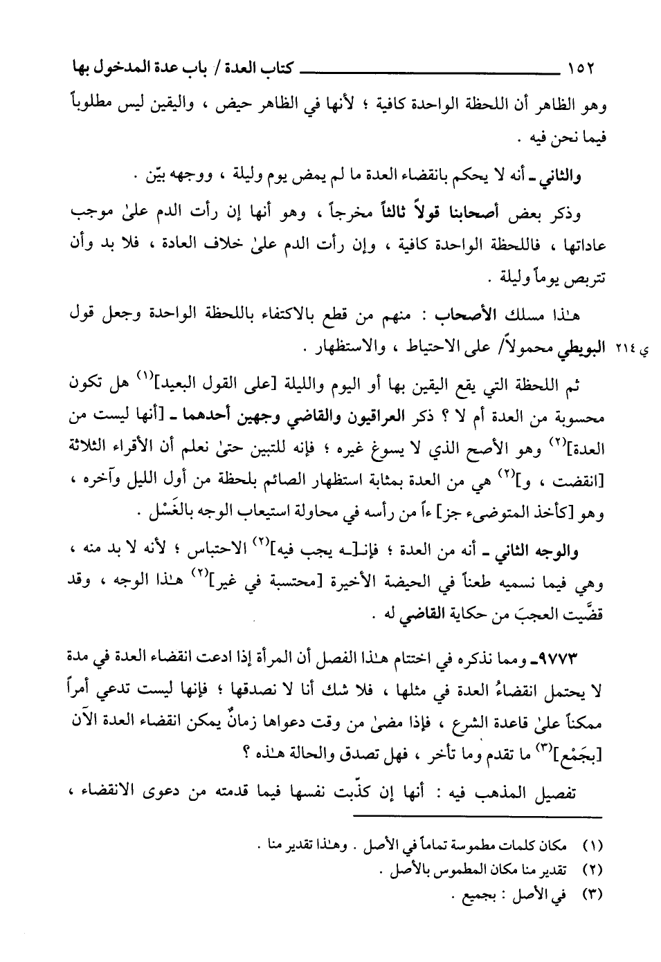ثم اللحظة التي يقع اليقين بها أو اليوم والليلة [على القول البعيد] (1) هل تكون محسوبة من العدة أم لا؟ ذكر العراقيون والقاضي وجهين أحدهما -[أنها ليست من العدة] (2) وهو الأصح الذي لا يسوغ غيره؛ فإنه للتبين حتى نعلم أن الأقراء الثلاثة [انقضت، و] (2) هي من العدة بمثابة استظهار الصائم بلحظة من أول الليل وآخره، وهو [كأخذ المتوضىء جز] ءاً من رأسه في محاولة استيعاب الوجه بالغَسْل.