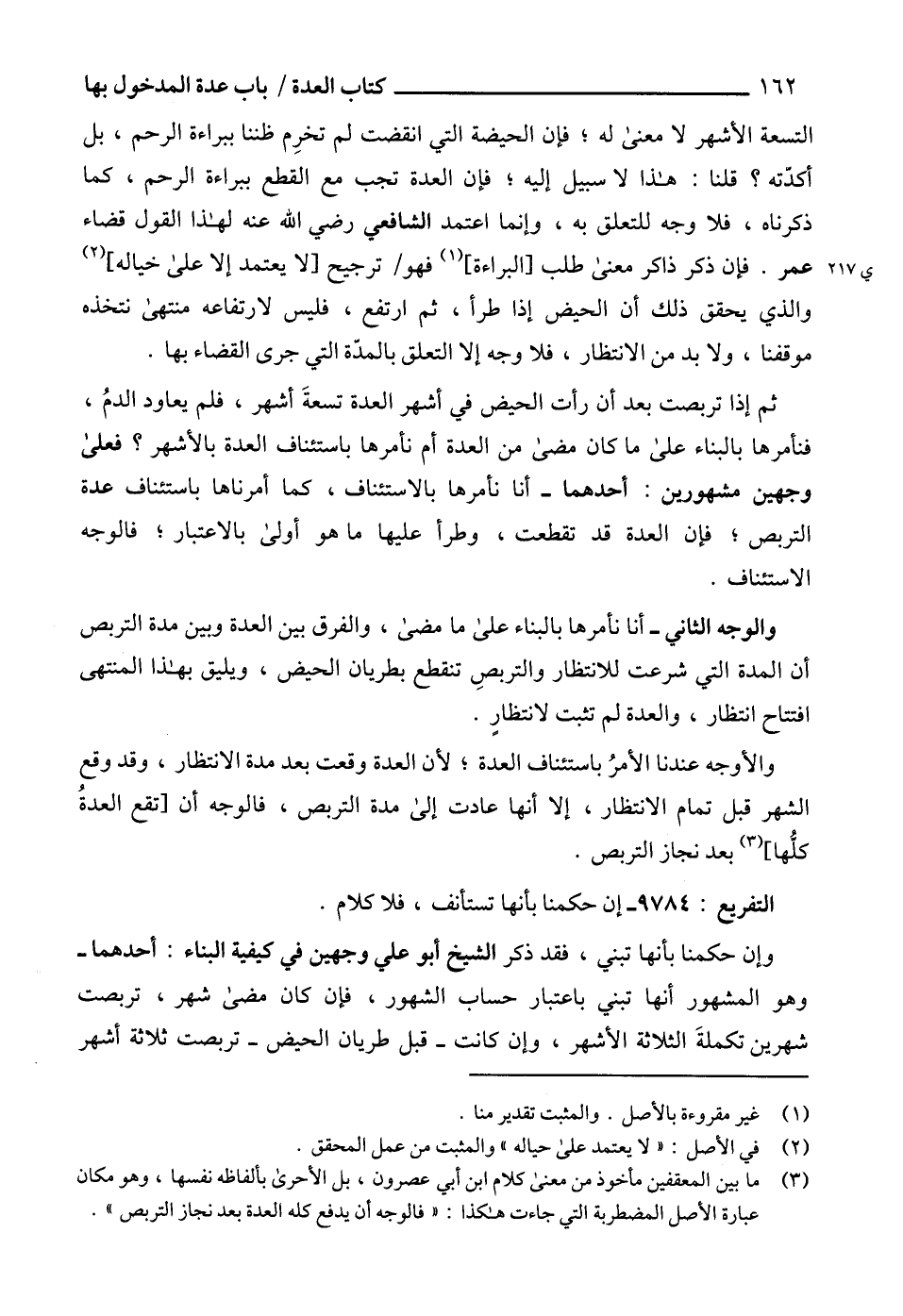 (3) ما بين المعقفين مأخوذ من معنى كلام ابن أبي عصرون، بل الأحرى بألفاظه نفسها، وهو مكان عبارة الأصل المضطربة التي جاءت هكذا: "فالوجه أن يدفع كله العدة بعد نجاز التربص".