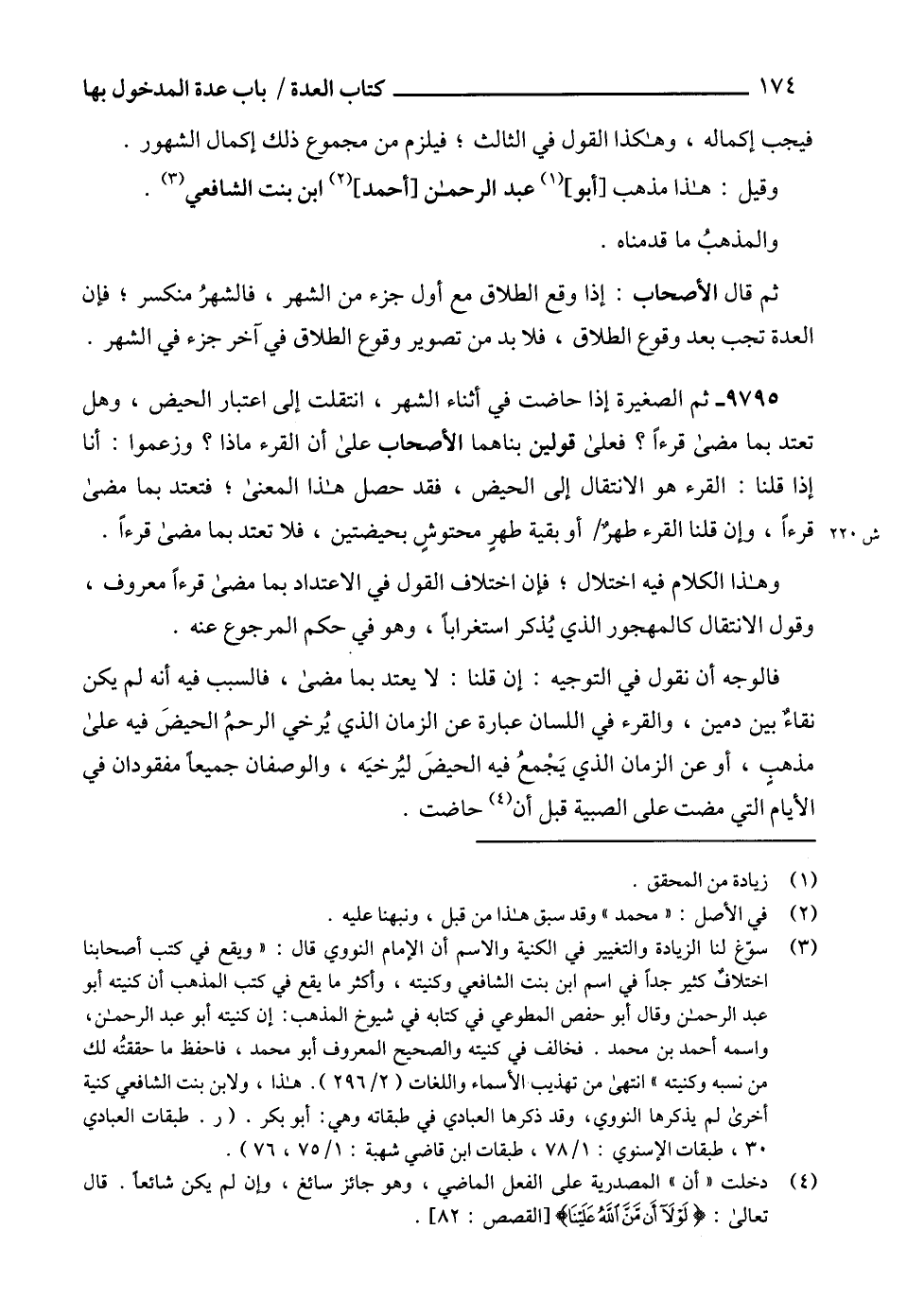 (3) سوّغ لنا الزيادة والتغيير في الكنية والاسم أن الإمام النووي قال: " ويقع في كتب أصحابنا اختلافٌ كثير جداً في اسم ابن بنت الشافعي وكنيته، وأكثر ما يقع في كتب المذهب أن كنيته أبو عبد الرحمن وقال أبو حفص المطوعي في كتابه في شيوخ المذهب: إن كنيته أبو عبد الرحمن، واسمه أحمد بن محمد. فخالف في كنيته والصحيح المعروف أبو محمد، فاحفظ ما حققتُه لك من نسبه وكنيته " انتهى من تهذيب الأسماء واللغات (2/ 296). هذا، ولابن بنت الشافعي كنية أخرى لم يذكرها النووي، وقد ذكرها العبادي في طبقاته وهي: أبو بكر. (ر. طبقات العبادي 30، طبقات الإسنوي: 1/ 78، طبقات ابن قاضي شهبة: 1/ 75، 76).