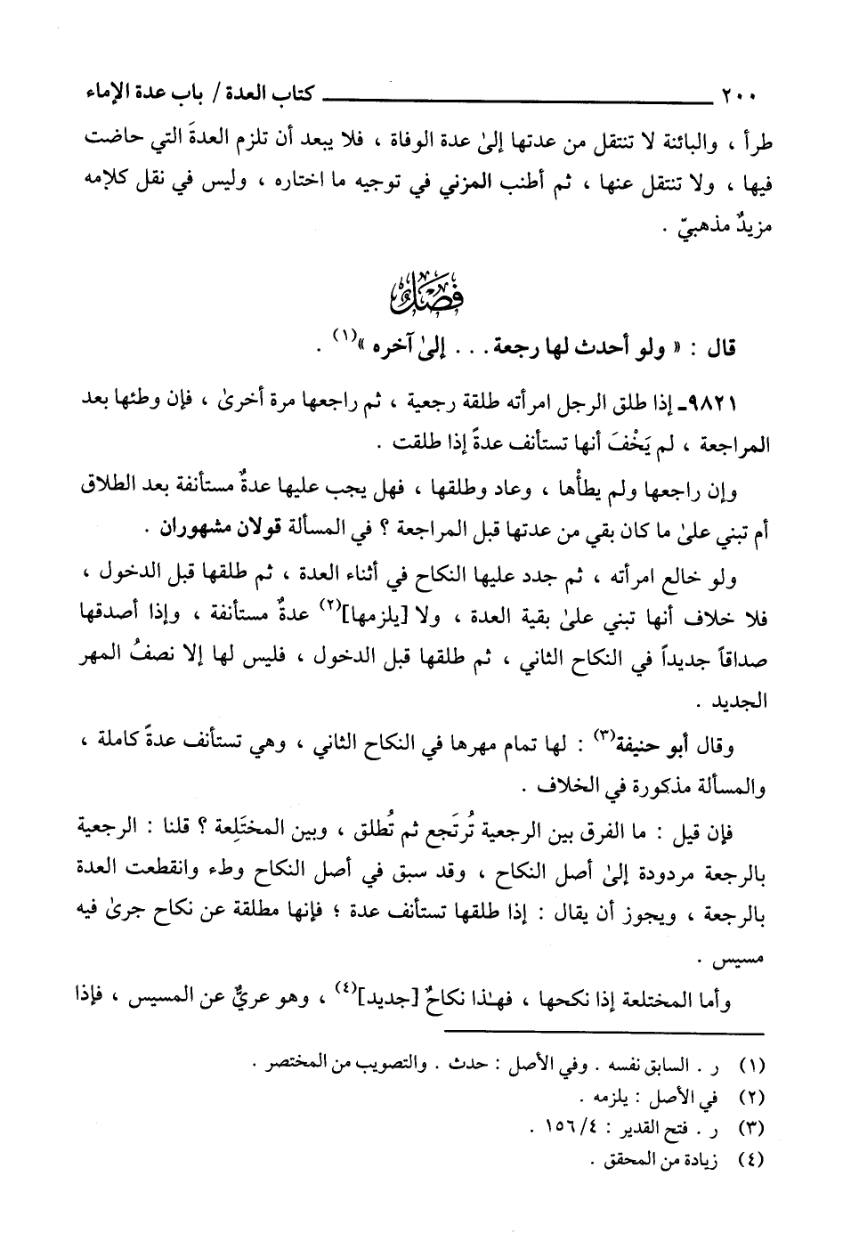 9821 - إذا طلق الرجل امرأته طلقة رجعية، ثم راجعها مرة أخرى، فإن وطئها بعد المراجعة، لم يَخْفَ أنها تستأنف عدةً إذا طلقت.