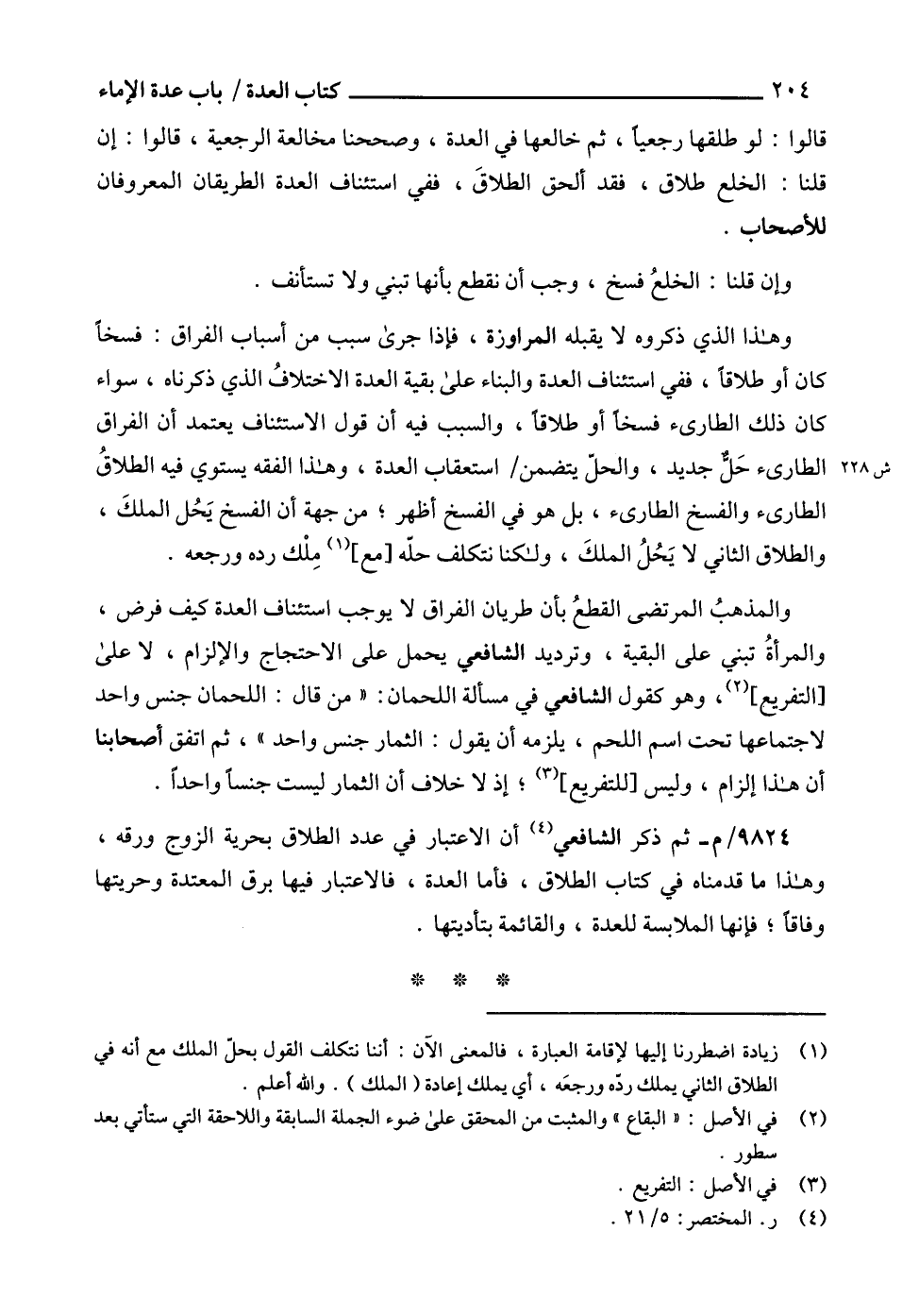 (1) زيادة اضطررنا إليها لإقامة العبارة، فالمعنى الآن: أننا نتكلف القول بحلّ الملك مع أنه في الطلاق الثاني يملك ردّه ورجعَه، أي يملك إعادة (الملك). والله أعلم.