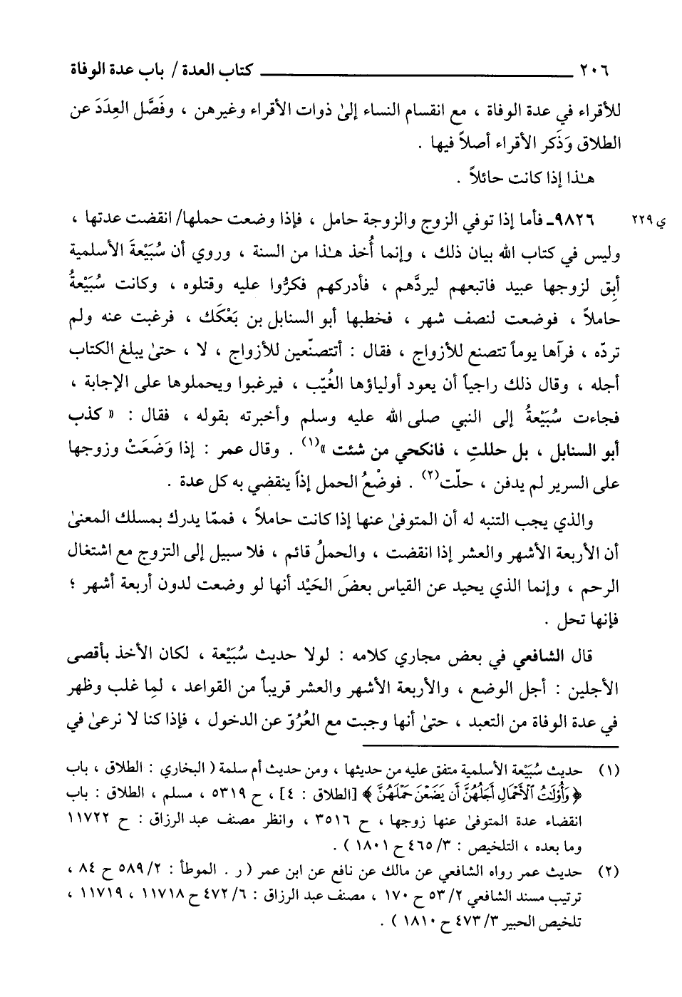 (1) حديث سُبَيْعة الأسلمية متفق عليه من حديثها، ومن حديث أم سلمة (البخاري: الطلاق، باب {وَأُولَاتُ الْأَحْمَالِ أَجَلُهُنَّ أَنْ يَضَعْنَ حَمْلَهُنَّ} [الطلاق: 4]، ح 5319، مسلم، الطلاق: باب انقضاء عدة المتوفى عنها زوجها، ح 3516، وانظر مصنف عبد الرزاق: ح 11722 وما بعده، التلخيص: 3/ 465 ح 1801).
