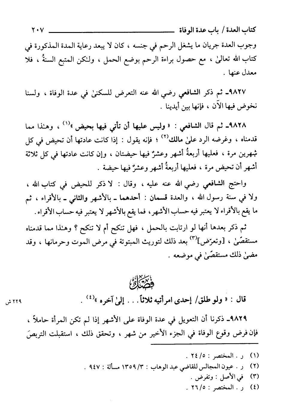 9827 - ثم ذكر الشافعي رضي الله عنه التعرض للسكنى في عدة الوفاة، ولسنا نخوض فيها الآن، فإنها بين أيدينا.