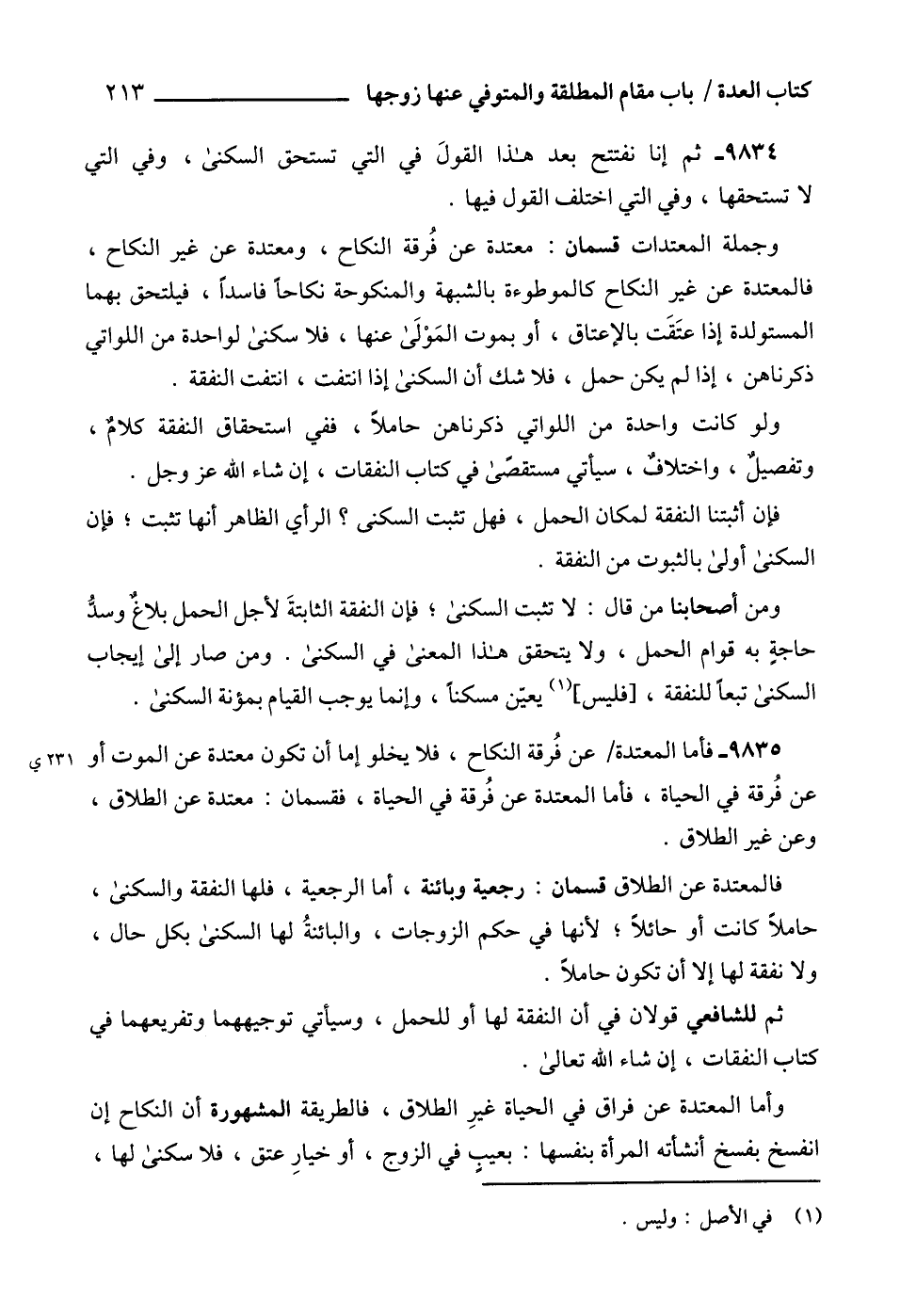 9834 - ثم إنا نفتتح بعد هذا القولَ في التي تستحق السكنى، وفي التي لا تستحقها، وفي التي اختلف القول فيها.