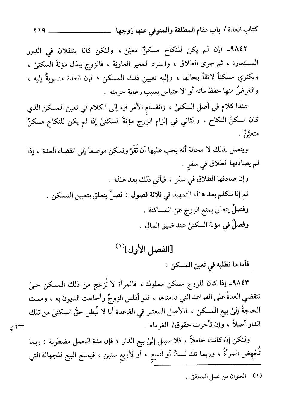 ثم إنا نتكلم بعد هذا التمهيد في ثلاثة فصول: فصلٌ يتعلق بتعيين المسكن.