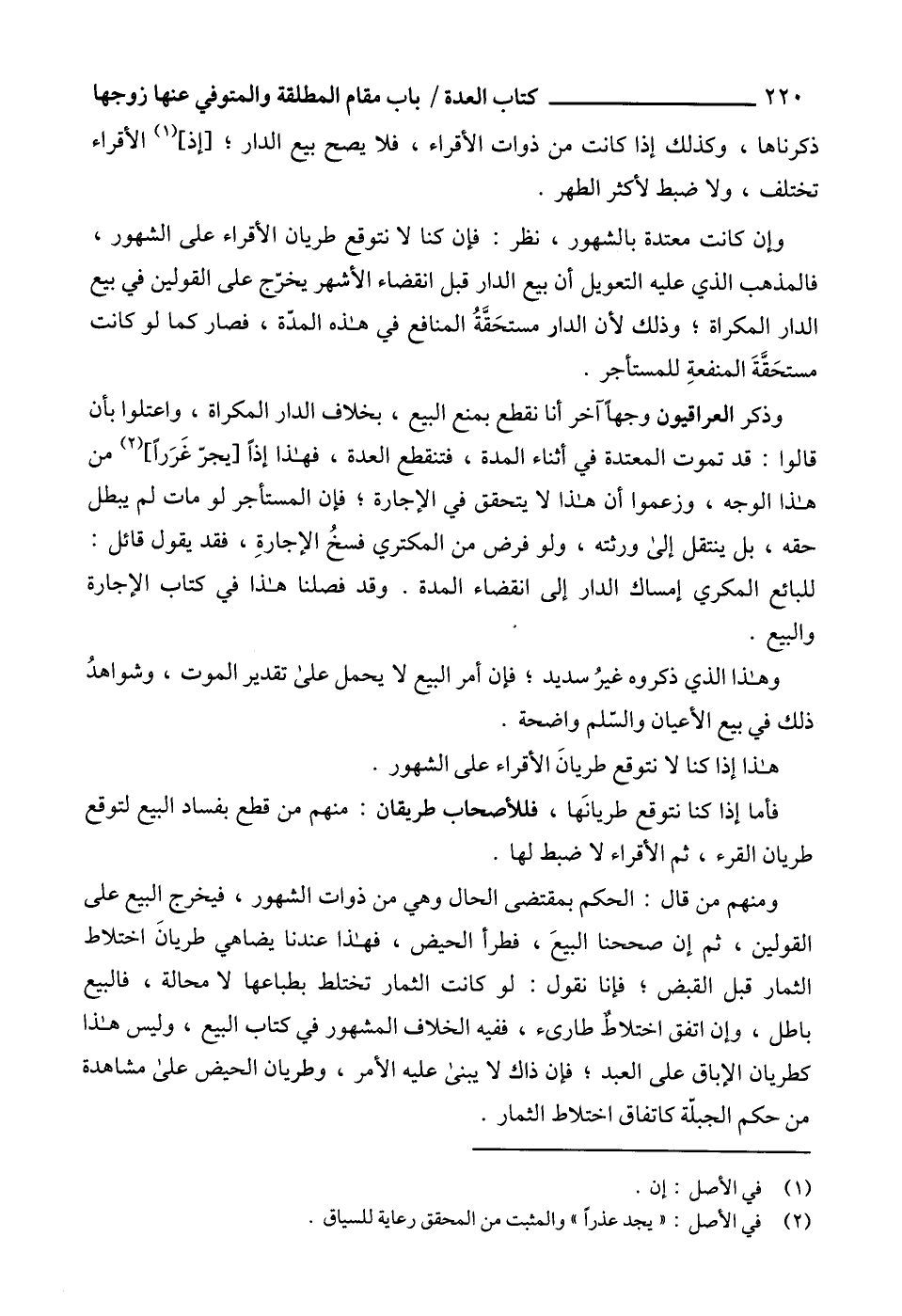 فأما إذا كنا نتوقع طريانَها، فللأصحاب طريقان: منهم من قطع بفساد البيع لتوقع طريان القرء، ثم الأقراء لا ضبط لها.