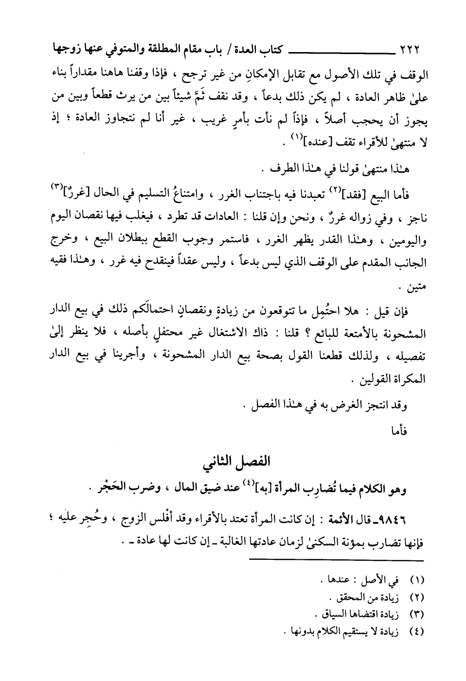 9846 - قال الأئمة: إن كانت المرأة تعتد بالأقراء وقد أفْلس الزوج، وحُجِر عليه؛ فإنها تضارب بمؤنة السكنى لزمان عادتها الغالبة -إن كانت لها عادة-.