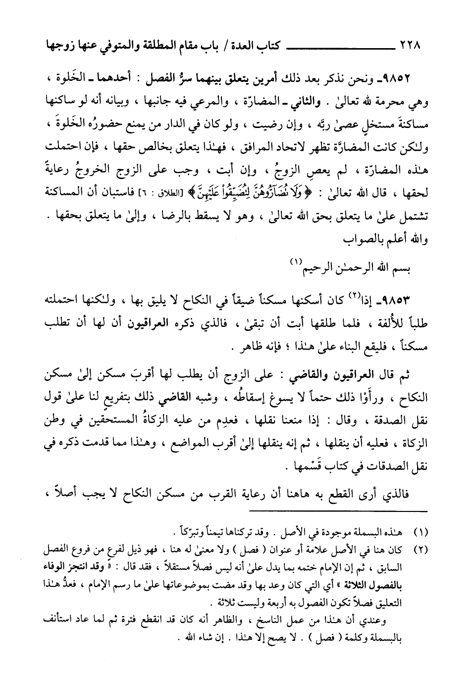 (2) كان هنا في الأصل علامة أو عنوان (فصل) ولا معنى له هنا، فهو ذيل لفرعٍ من فروع الفصل السابق، ثم إن الإمام ختمه بما يدل على أنه ليس فصلاً مستقلاً، فقد قال: "وقد انتجز الوفاء بالفصول الثلاثة" أي التي كان وعد بها وقد مضت بموضوعاتها على ما رسم الإمام، فعدُّ هذا التعليق فصلاً تكون الفصول به أربعة وليست ثلاثة.