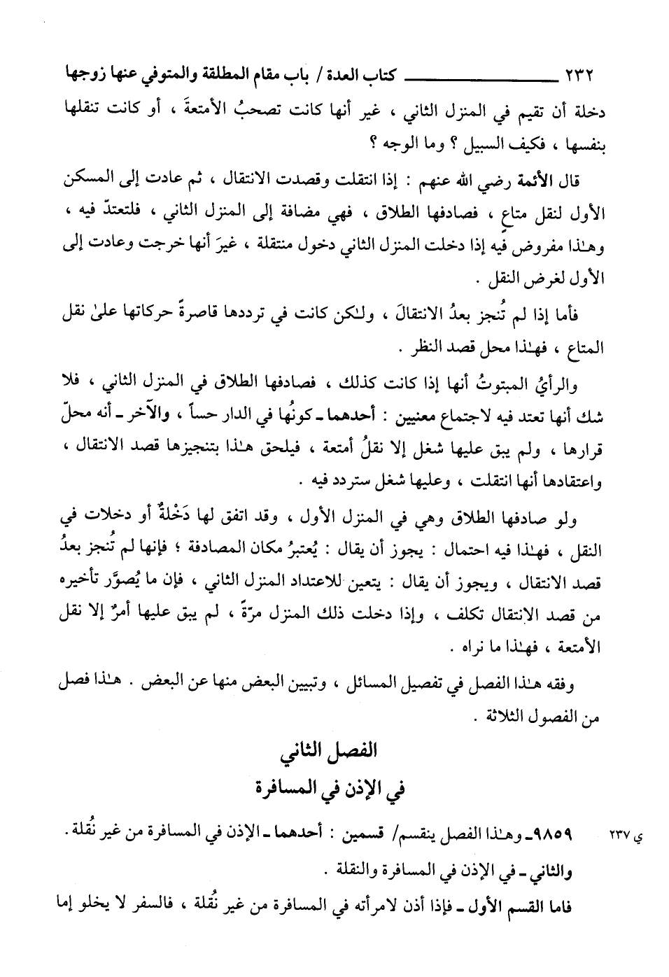 9859 - وهذا الفصل ينقسم قسمين: أحدهما - الإذن في المسافرة من غير نُقلة.