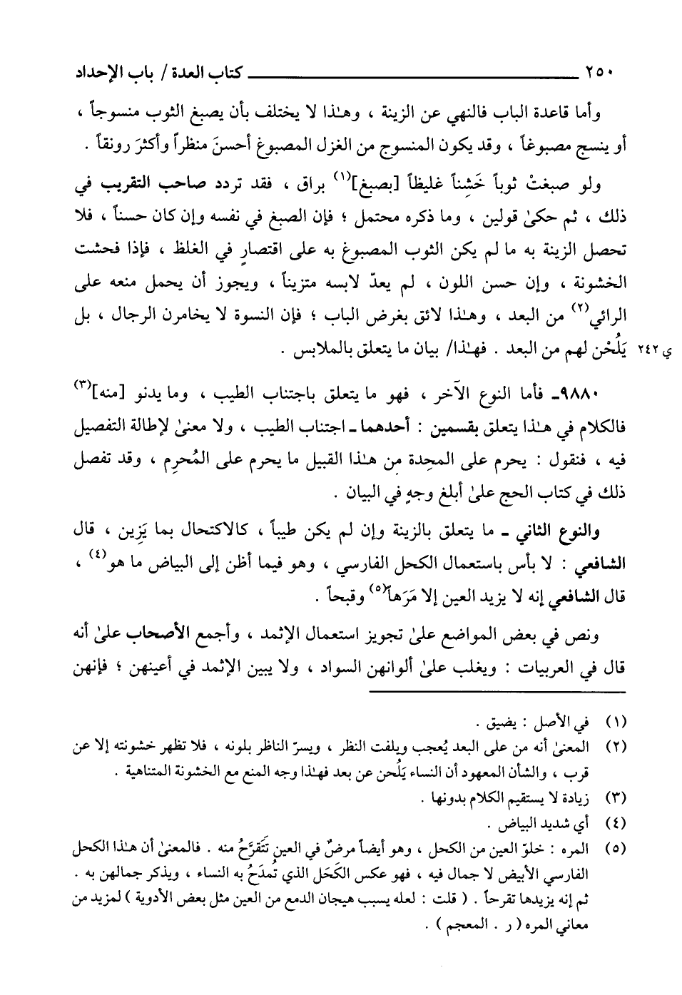 ونص في بعض المواضع على تجويز استعمال الإثمد، وأجمع الأصحاب على أنه قال في العربيات: ويغلب على ألوانهن السواد، ولا يبين الإثمد في أعينهن؛ فإنهن