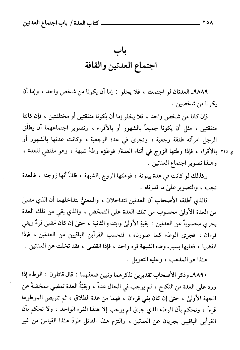 9889 - العدتان لو اجتمعتا، فلا يخلو: إما أن يكونا من شخص واحد، وإما أن يكونا من شخصين.