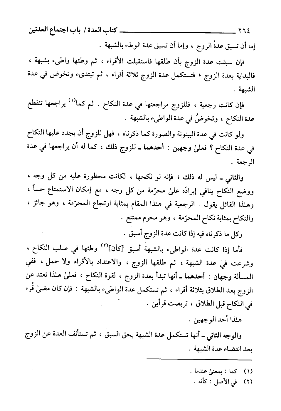 فأما إذا كانت عدة الواطىء بالشبهة أسبق [كأن] (2) وطئها في صلب النكاح، وشرعت في عدة الشبهة، ثم طلقها الزوج، والاعتداد بالأقراء ولا حمل، ففي المسألة وجهان: أحدهما - أنها تبدأ بعدة الزوج، لقوة النكاح، فعلى هذا تعتد عن الزوج بعد الطلاق بثلاثة أقراء، ثم تستكمل عدة الواطىء بالشبهة: فإن كان مضى قُرء في النكاح قبل الطلاق، تربصت قرأين.