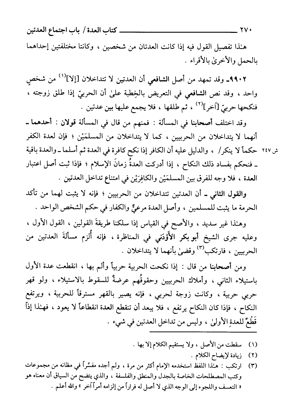 وهذا غير سديد، والأصح في القياس إذا سلكنا طريقةَ القولين، القول الأول، وعليه جرى الشيخ أبو بكر الأَوْدَني في المناظرة، فإنه أُلزم مسألةَ العدتين من الحربيين، فارتكب (3) وقضى بأنهما لا يتداخلان.