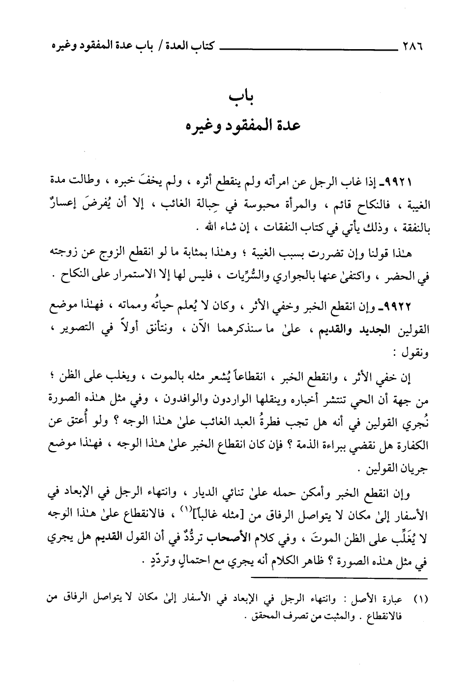 9922 - وإن انقطع الخبر وخفي الأثر، وكان لا يُعلم حياتُه ومماته، فهذا موضع القولين الجديد والقديم، على ما سنذكرهما الآن، ونتأنق أولاً في التصوير، ونقول: