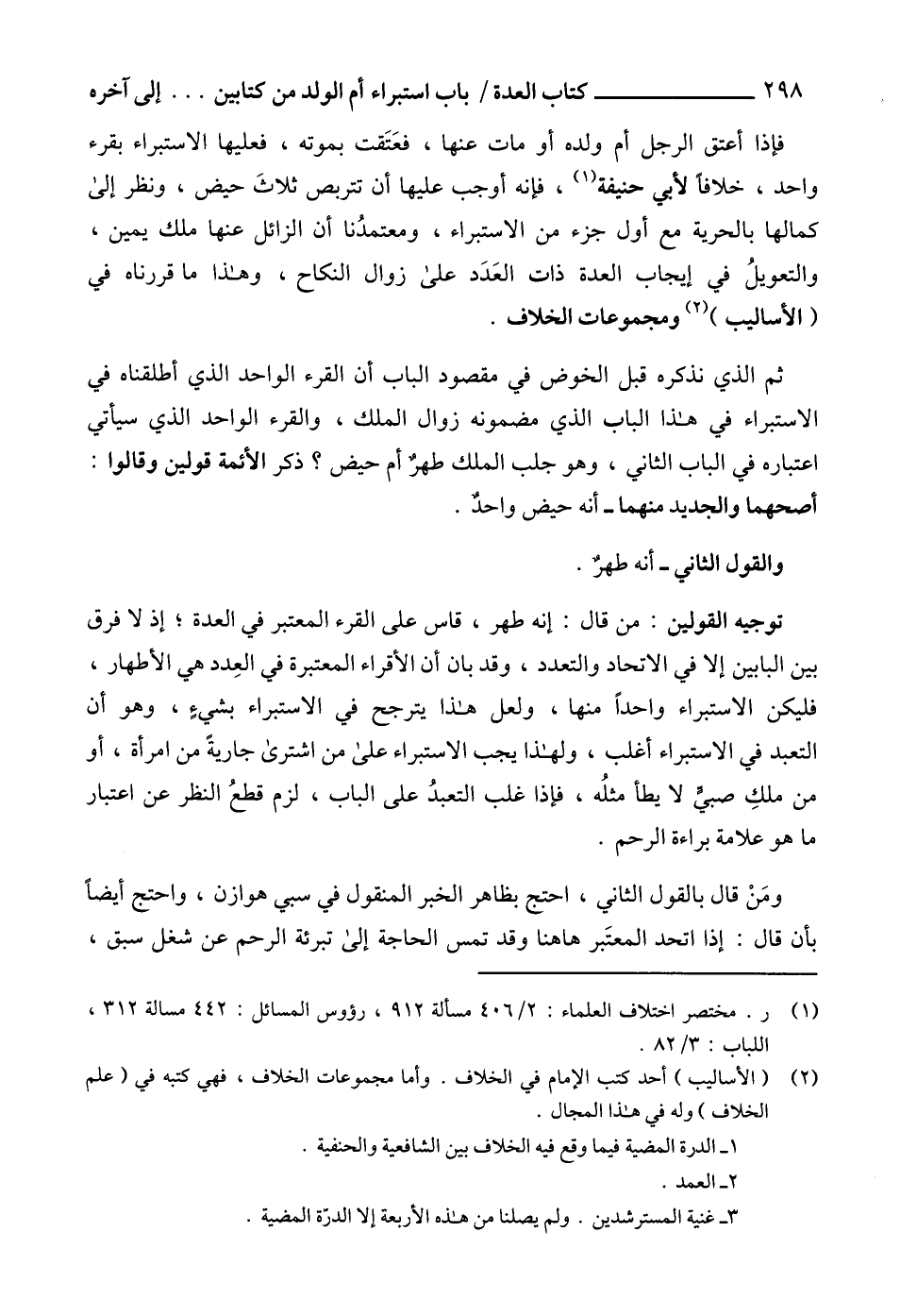 توجيه القولين: من قال: إنه طهر، قاس على القرء المعتبر في العدة؛ إذ لا فرق بين البابين إلا في الاتحاد والتعدد، وقد بان أن الأقراء المعتبرة في العِدد هي الأطهار، فليكن الاستبراء واحداً منها، ولعل هذا يترجح في الاستبراء بشيءٍ، وهو أن التعبد في الاستبراء أغلب، ولهذا يجب الاستبراء على من اشترى جاريةً من امرأة، أو من ملكِ صبيٍّ لا يطأ مثلُه، فإذا غلب التعبدُ على الباب، لزم قطعُ النظر عن اعتبار ما هو علامة براءة الرحم.