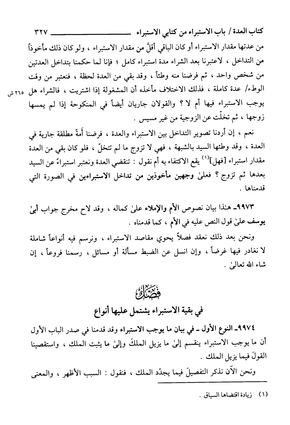 9974 - النوع الأول - في بيان ما يوجب الاستبراء وقد قدمنا في صدر الباب الأول أن ما يوجب الاستبراء ينقسم إلى ما يزيل الملكَ وإلى ما يثبت الملك، واستقصينا القولَ فيما يزيل الملك.