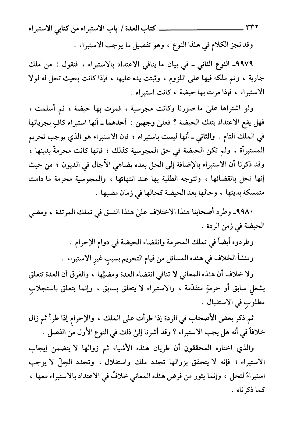 9980 - وطرد أصحابنا هذا الاختلاف على هذا النسق في تملك المرتدة، ومضي الحيضة في زمن الردة.
