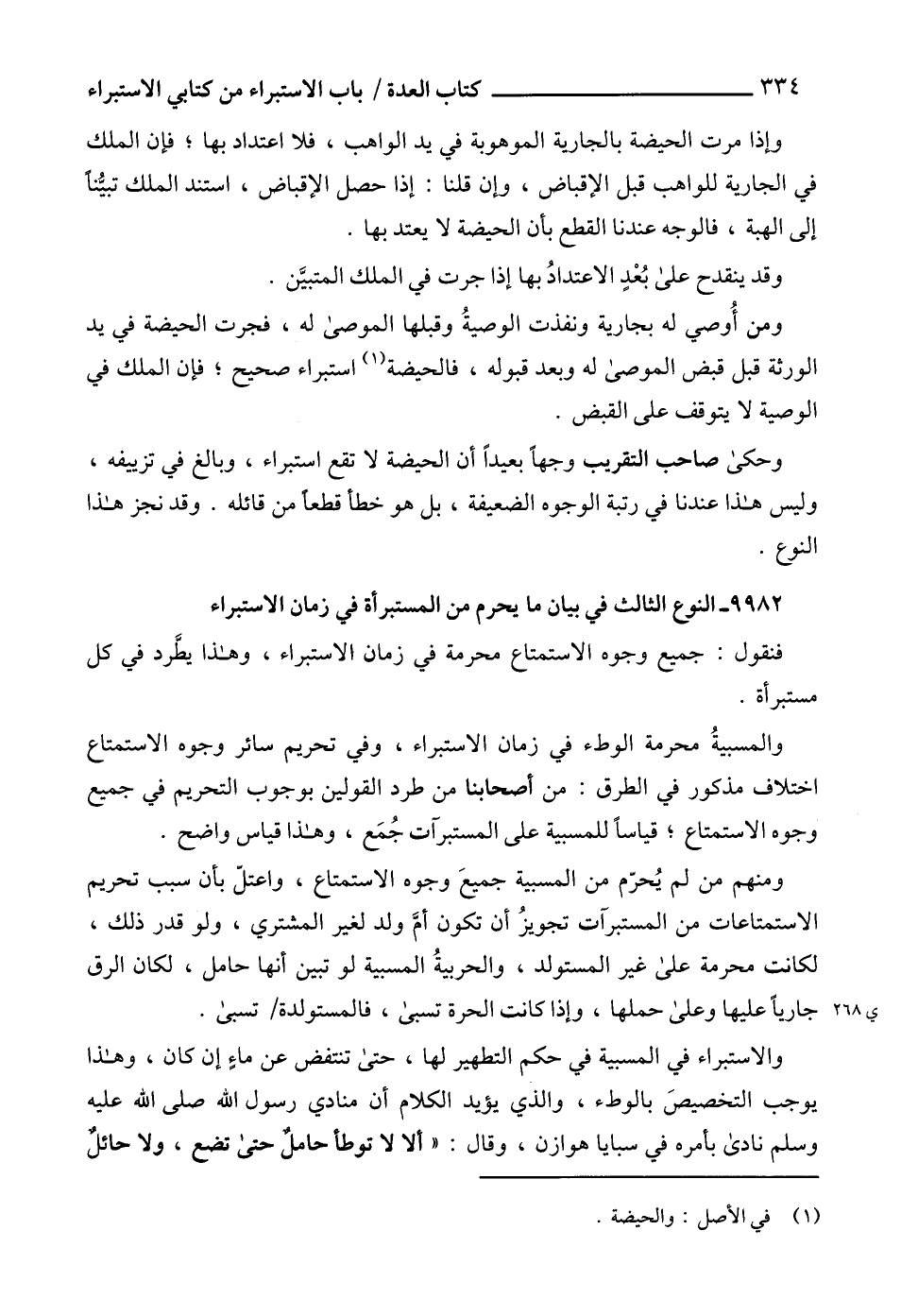9982 - النوع الثالث في بيان ما يحرم من المستبرأة في زمان الاستبراء فنقول: جميع وجوه الاستمتاع محرمة في زمان الاستبراء، وهذا يطَّرد في كل مستبرأة.