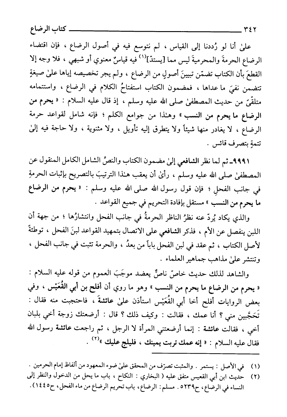 (2) حديث ابن أبي القعيس متفق عليه (البخاري: النكاح، باب ما يحل من الدخول والنظر إلى النساء في الرضاع، ح 5239. مسلم: الرضاع، باب تحريم الرضاع من ماء الفحل، ح 1445).