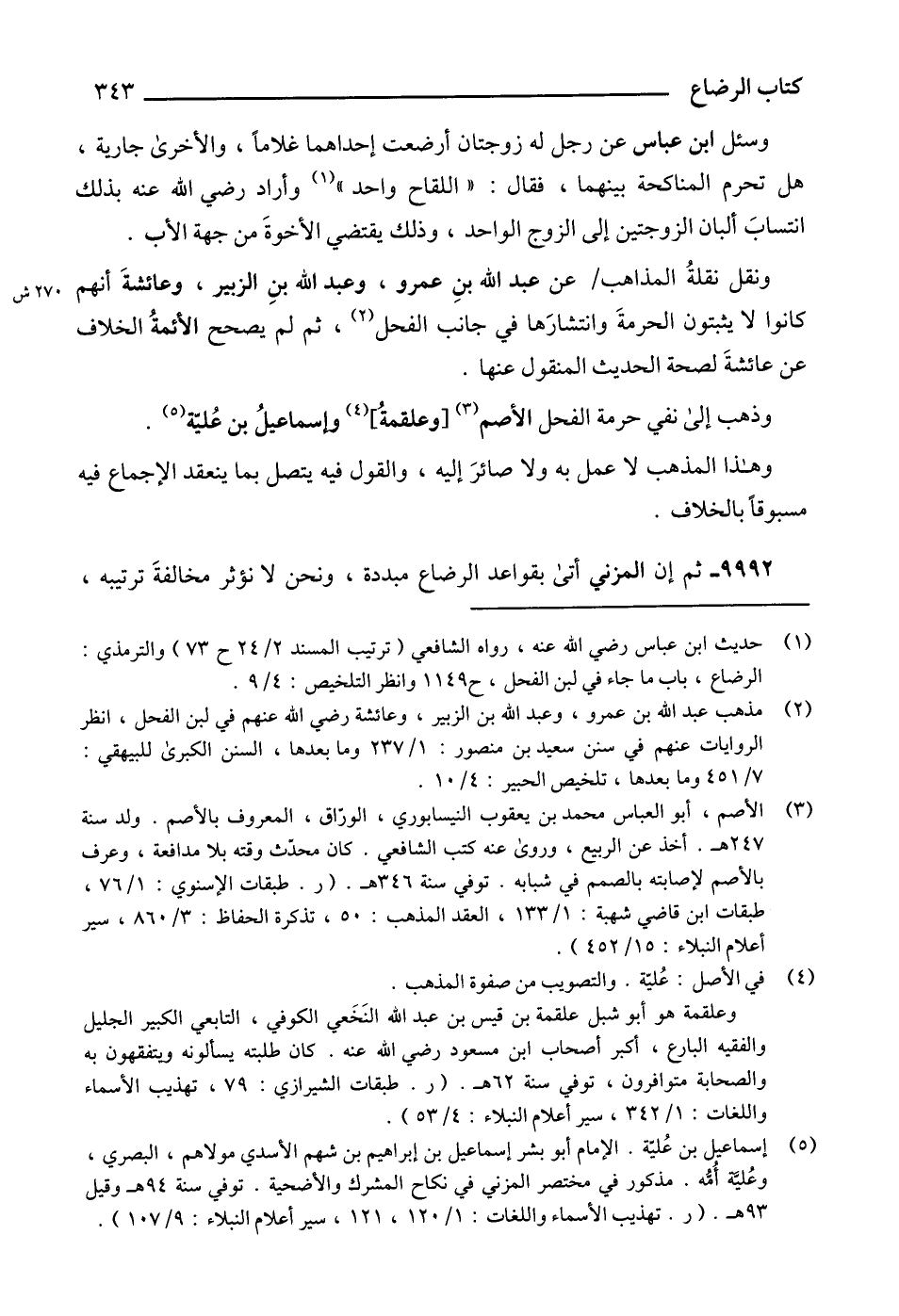 (2) مذهب عبد الله بن عمرو، وعبد الله بن الزبير، وعائشة رضي الله عنهم في لبن الفحل، انظر الروايات عنهم في سنن سعيد بن منصور: 1/ 237 وما بعدها، السنن الكبرى للبيهقي: 7/ 451 وما بعدها، تلخيص الحبير: 4/ 10.