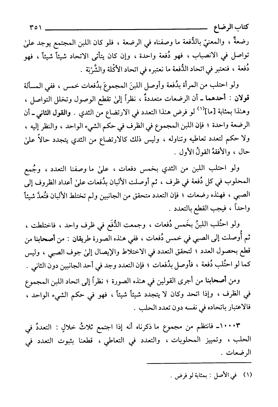 10003 - فانتظم من مجموع ما ذكرناه أنه إذا اجتمع ثلاثُ خلالٍ: التعددُ في الحلب، وتمييز المحلوبات، والتعدد في التعاطي، قطعنا بثبوت التعدد في الرضعات.
