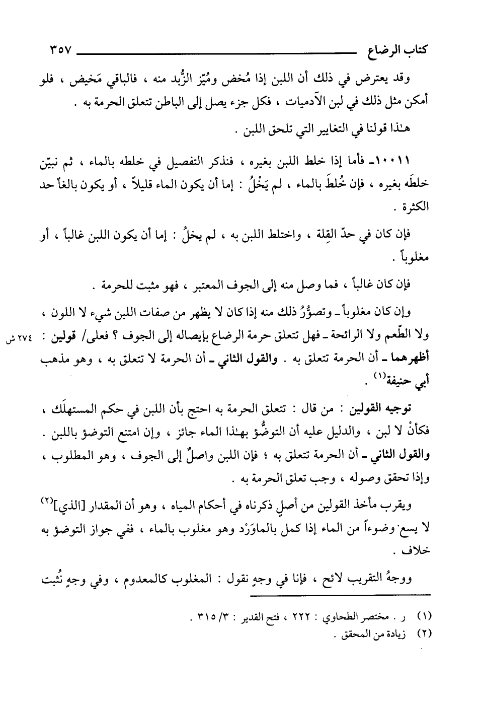 (1) ر. مختصر الطحاوي: 222، فتح القدير: 3/ 315.