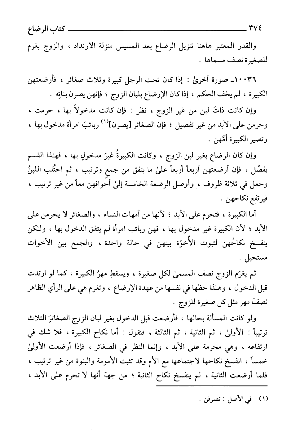 ثم يغرَم الزوج نصف المسمى لكل صغيرة، ويسقط مهرُ الكبيرة، كما لو ارتدت قبل الدخول، وهذا حظها في نفسها من عهدة الإرضاع، وتغرم هي على الرأي الظاهر نصفَ مهر مثل كل صغيرة للزوج.