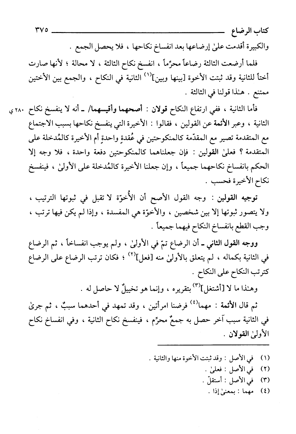ثم قال الأئمة: مهما (4) فرضنا امرأتين، وقد تمهد في أحدهما سببٌ، ثم جرى في الثانية سبب آخر حصل به جمعٌ محرِّم، فينفسخ نكاح الثانية، وفي انفساخ نكاح الأولى القولان.