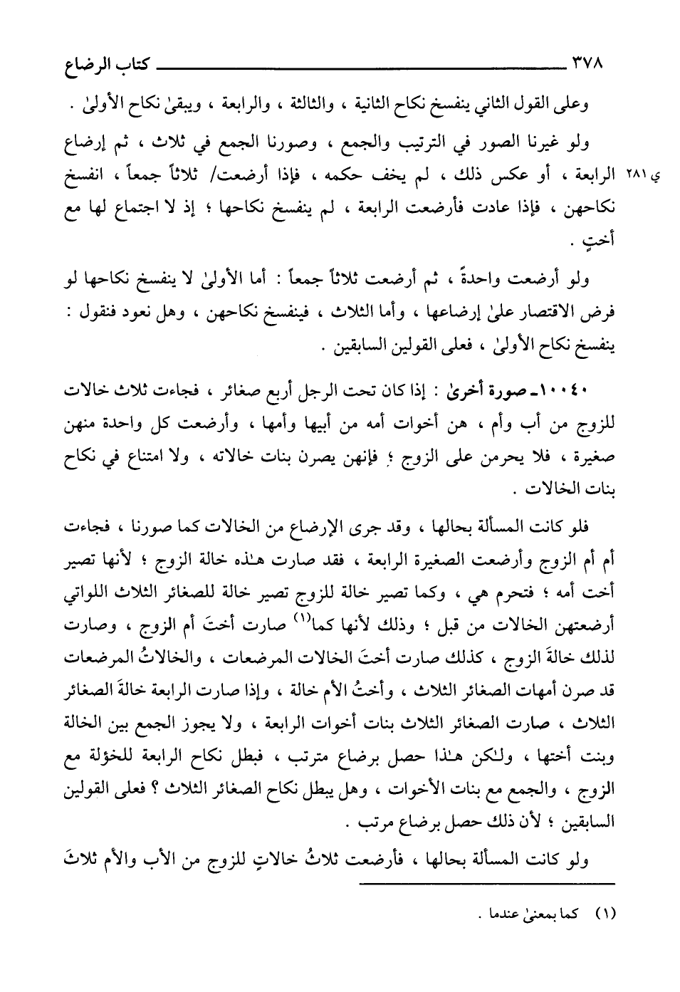 فلو كانت المسألة بحالها، وقد جرى الإرضاع من الخالات كما صورنا، فجاءت أم أم الزوج وأرضعت الصغيرة الرابعة، فقد صارت هذه خالة الزوج؛ لأنها تصير أخت أمه؛ فتحرم هي، وكما تصير خالة للزوج تصير خالة للصغائر الثلاث اللواتي أرضعتهن الخالات من قبل؛ وذلك لأنها كما (1) صارت أختَ أم الزوج، وصارت لذلك خالةَ الزوج، كذلك صارت أختَ الخالات المرضعات، والخالاتُ المرضعات قد صرن أمهات الصغائر الثلاث، وأختُ الأم خالة، وإذا صارت الرابعة خالةَ الصغائر الثلاث، صارت الصغائر الثلاث بنات أخوات الرابعة، ولا يجوز الجمع بين الخالة وبنت أختها، ولكن هذا حصل برضاع مترتب، فبطل نكاح الرابعة للخؤلة مع الزوج، والجمع مع بنات الأخوات، وهل يبطل نكاح الصغائر الثلاث؟ فعلى القولين السابقين؛ لأن ذلك حصل برضاع مرتب.