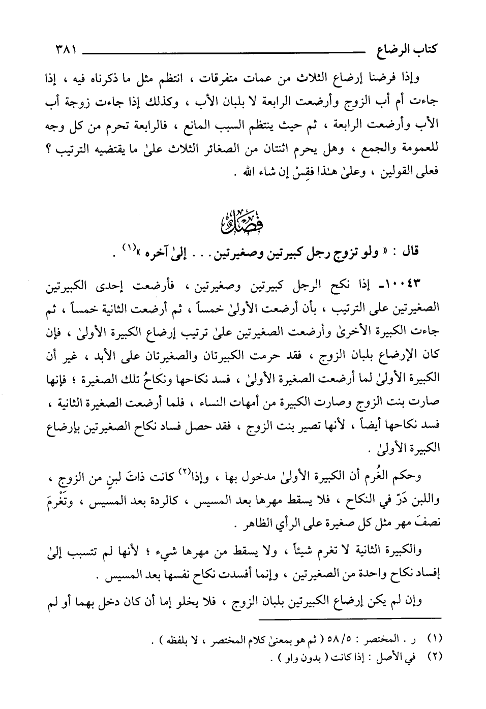 (1) ر. المختصر: 5/ 58 (ثم هو بمعنى كلام المختصر، لا بلفظه).