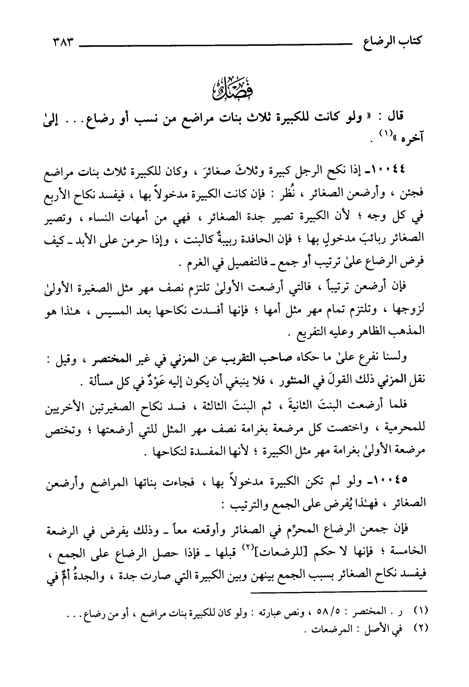 (1) ر. المختصر: 5/ 58، ونص عبارته: ولو كان للكبيرة بنات مراضع، أو من رضاع ...