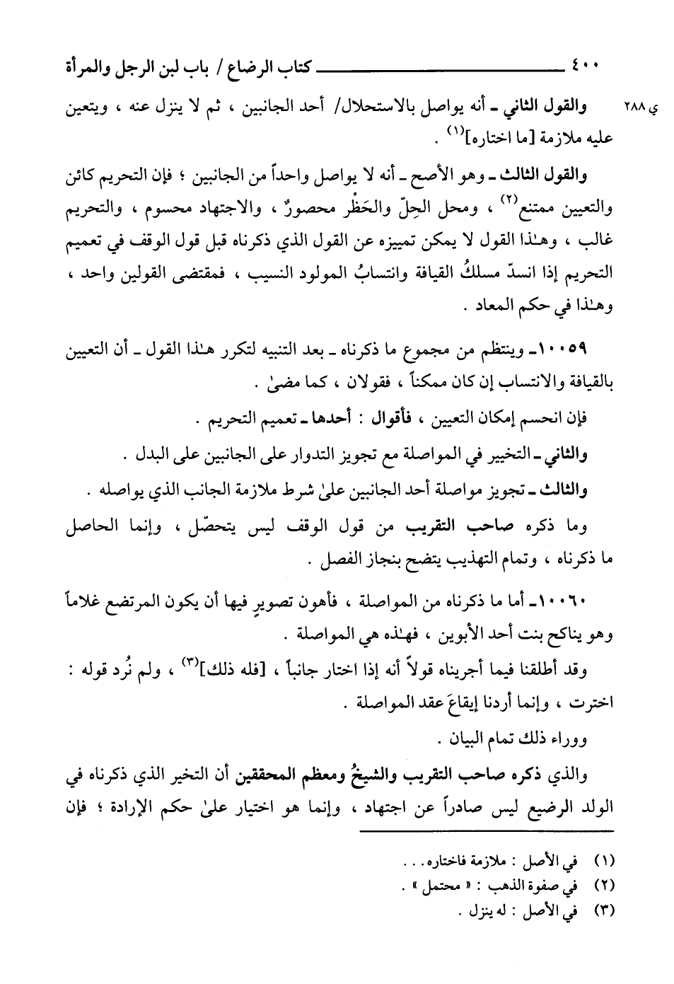 10060 - أما ما ذكرناه من المواصلة، فأهون تصويرٍ فيها أن يكون المرتضع غلاماً وهو يناكح بنت أحد الأبوين، فهذه هي المواصلة.