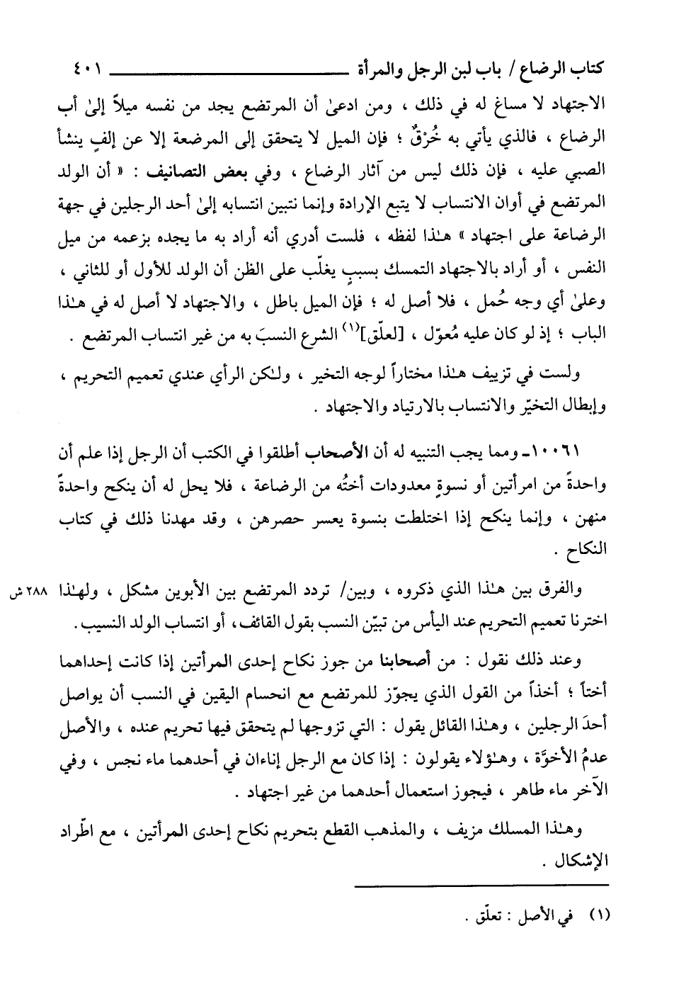 10061 - ومما يجب التنبيه له أن الأصحاب أطلقوا في الكتب أن الرجل إذا علم أن واحدةً من امرأتين أو نسوةٍ معدودات أختُه من الرضاعة، فلا يحل له أن ينكح واحدةً منهن، وإنما ينكح إذا اختلطت بنسوة يعسر حصرهن، وقد مهدنا ذلك في كتاب النكاح.