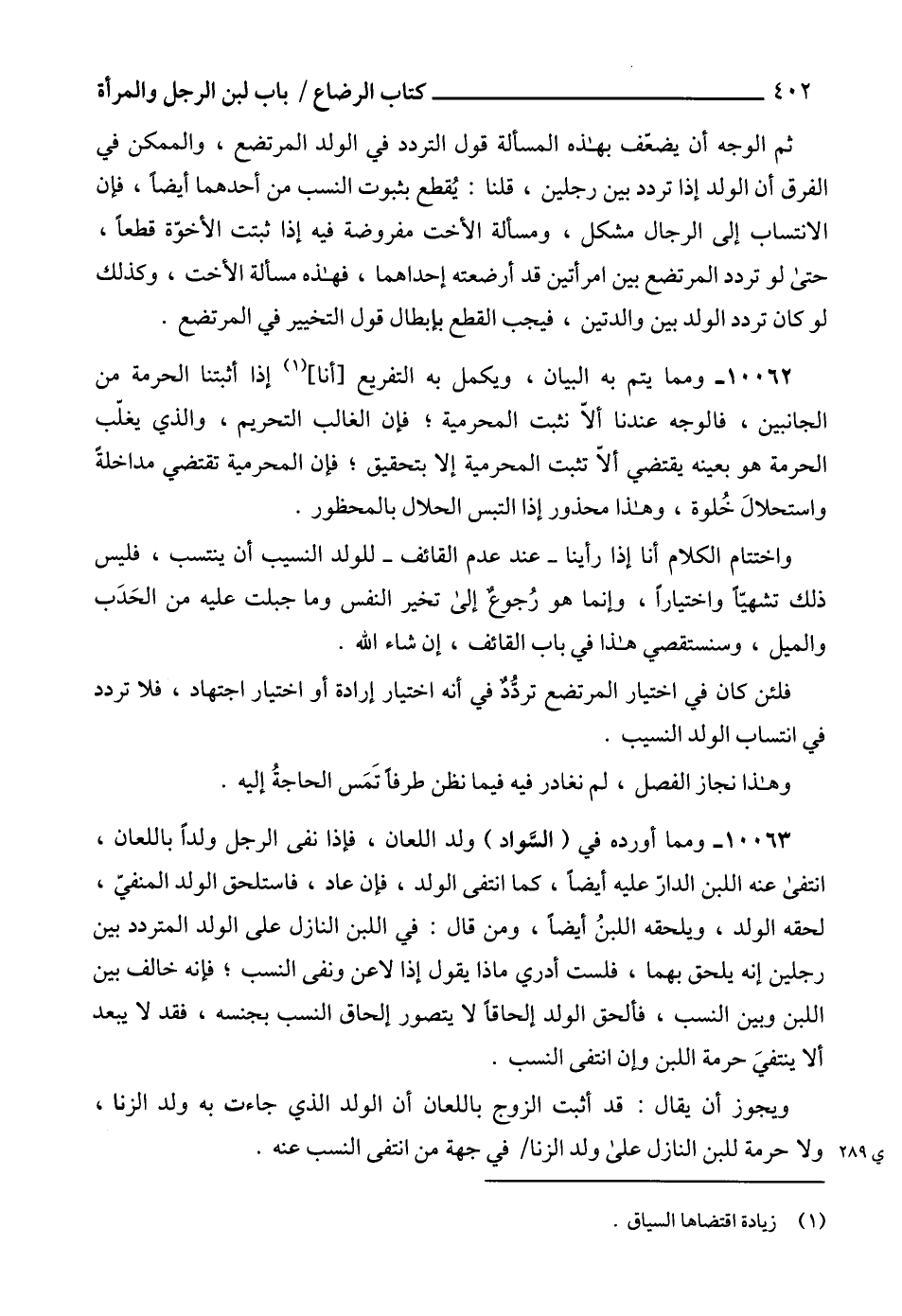 فلئن كان في اختيار المرتضع تردُّدٌ في أنه اختيار إرادة أو اختيار اجتهاد، فلا تردد في انتساب الولد النسيب.